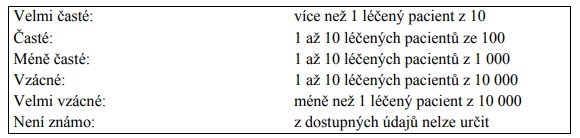 Hodnocení nežádoucích účinků je založeno na následujících informacích o frekvenci:
