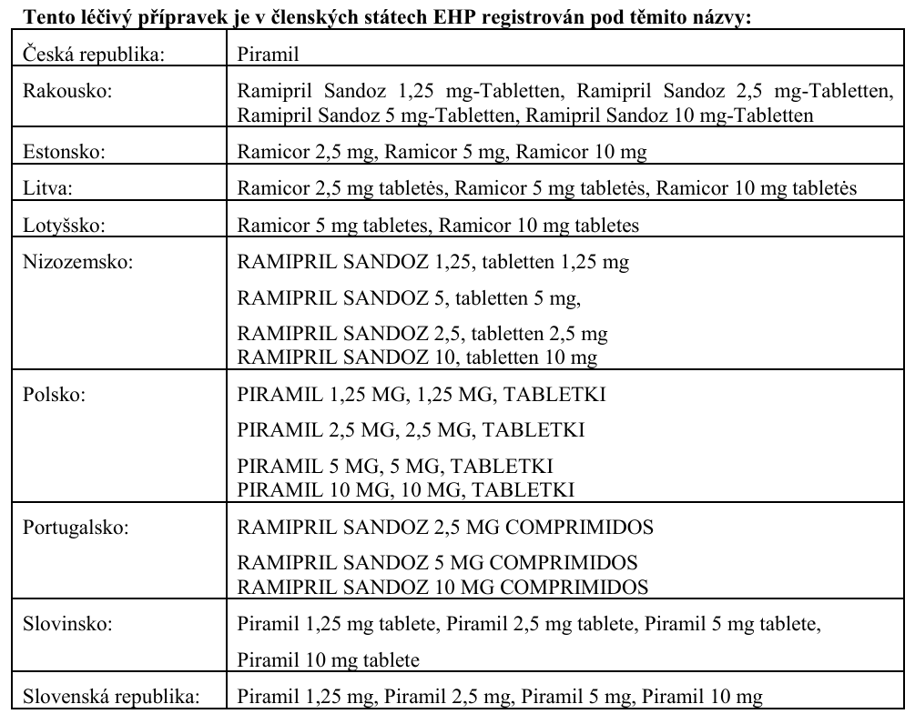 Pokud užíváte blokátor receptorů pro angiotenzin II (ARB) nebo aliskiren (viz také informace v bodě “Neužívejte Piramil” a “Upozornění a opatření”).
