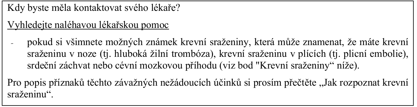 - Riziko, že se u vás vyvine krevní sraženina, se liší podle vaší lékařské anamnézy (viz níže „Faktory, které zvyšují vaše riziko krevní sraženiny“).