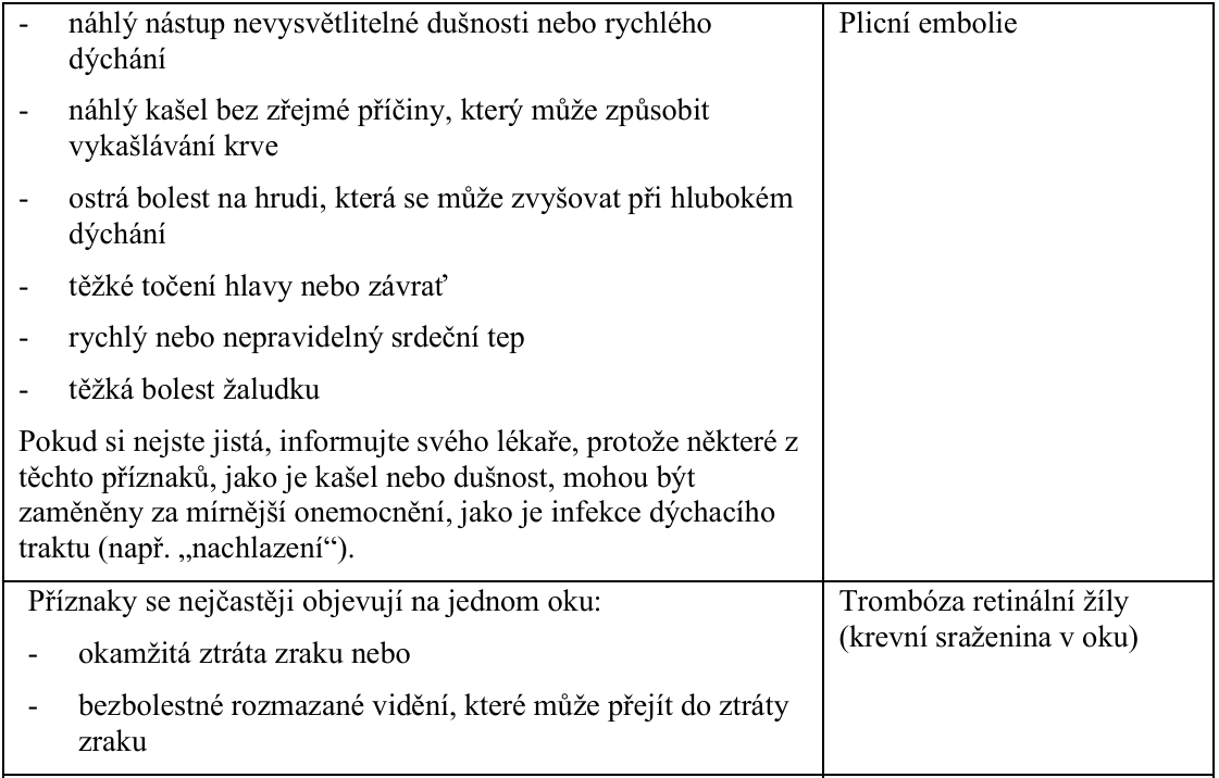 - Velmi vzácně se může krevní sraženina vytvořit v žíle v jiném orgánu, jako je oko (trombóza retinální žíly).