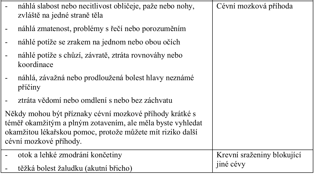 - pokud máte (nebo jste někdy měla) anginu pectoris (stav, který způsobuje těžkou bolest na hrudi a může být první známkou srdečního záchvatu) nebo tranzitorní ischemickou ataku (TIA – dočasné příznaky cévní mozkové příhody);