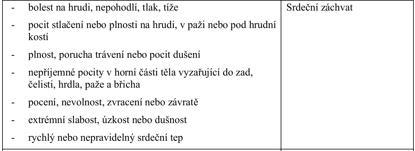 Vyhledejte rychlou lékařskou pomoc, pokud si všimnete některé/ho z následujících známek nebo příznaků.