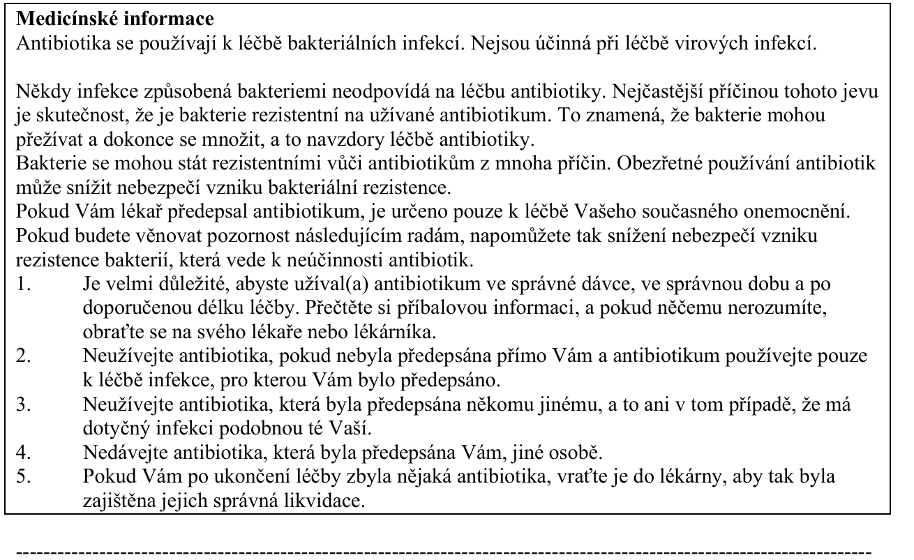 - jestliže již v minulosti mělo těžkou alergickou reakci na nějaké jiné antibiotikum. Ta se mohla projevit kožní vyrážkou nebo otokem obličeje nebo krku;