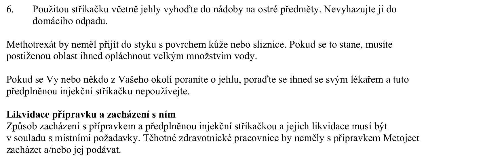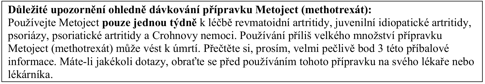 Zvláštní preventivní opatření při léčbě přípravkem Metoject
