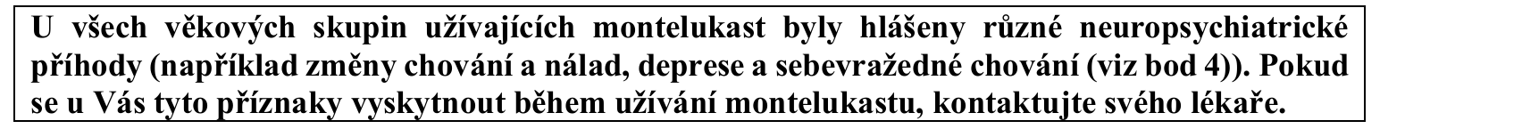 - jestliže jste alergický(á) na montelukast nebo na kteroukoli další složku tohoto přípravku (uvedenou v bodě 6).