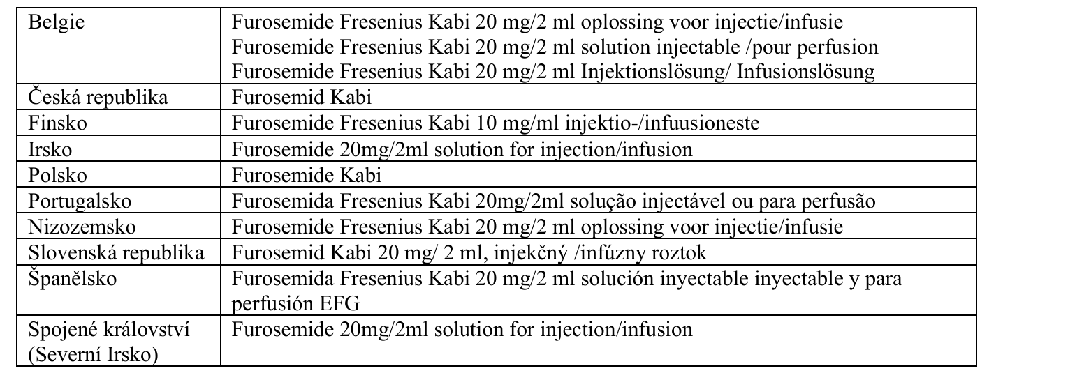 Injekční roztok furosemidu smí být mísen s neutrálními a slabě alkalickými roztoky s pH v rozmezí 7 až 10, jako je 0,9% roztok chloridu sodného a roztok Ringer-laktátu.